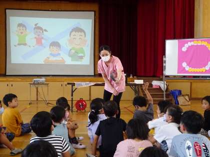 学校医の先生や歯科衛生士の方に来ていただき、歯磨きや6才臼歯についてお話をしていただきました。