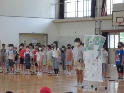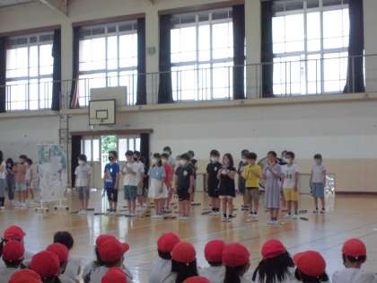 今日はいきいき発表会の日です。今回は3年生の発表でした。体育館には少し緊張した3年生と,それを優しく見守りながら鑑賞する4年生の姿がありました。