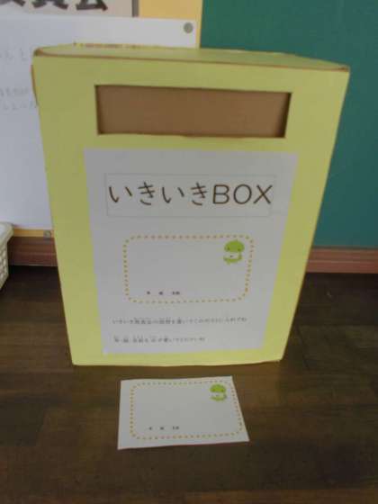 本部役員が司会・進行を務めました。9・10月の目標といきいきBOXの紹介がありました。今日の3年生の発表の感想を書いてポストに入れるそうです。誰でもいいそうですよ。