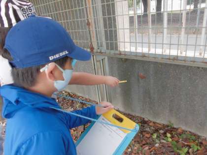 理科の学習で、学校の校庭にいる動物のすみかを探しに出かけました。