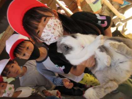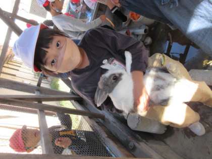 生活科「いきものとなかよし」で、飼育小屋のウサギのアーサーについて調べています。今日は、実際にふれあって、ウサギの様子を観察しました。最初は走り回って触ることもできなかったみんなですが、やさしく声をかけて、抱っこすることができました。