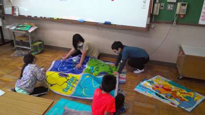 「こっちの方がはみ出しているから広いんじゃなかな。」
