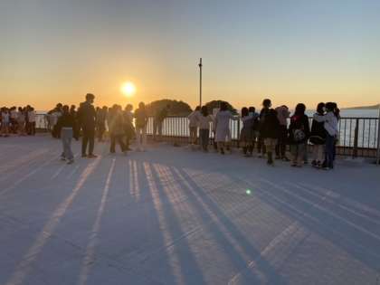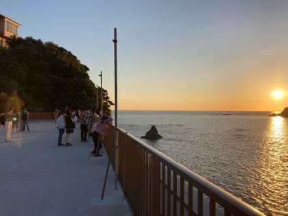 海の向こうに、少しずつ消えゆく夕陽・・・。