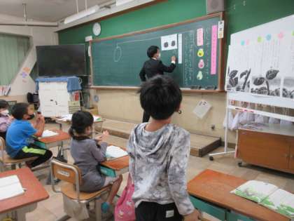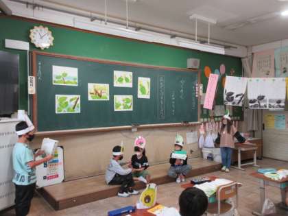 国語科で「やくそく」の学習をしています。登場人物たちの様子を確かめて、音読劇に表しました。