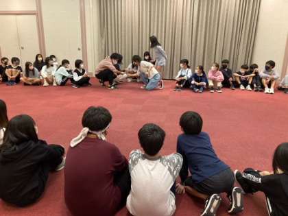 レクタイムの続きです。進化じゃんけんというゲームで、担任が見本を見せています。