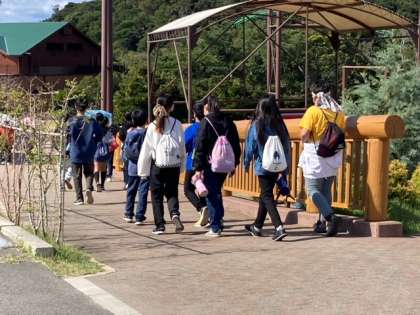 子どもたちの声が聞こえてきそうです。しおりの地図をみながら進みます。
