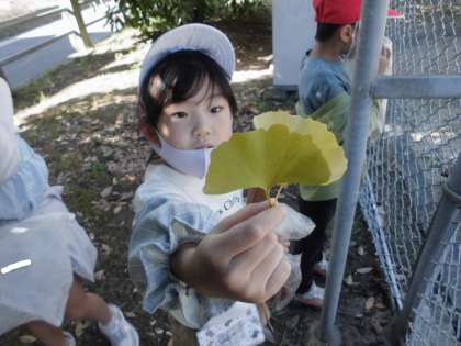 「どんぐりが落ちている」や「葉っぱの色が黄色になっている」などの声が飛び交う中、秋色に変わってきている公園に子どもたちは少し興奮気味でした。