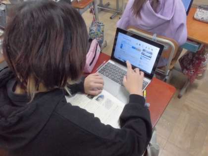 国語科「伝統工芸のよさを伝えよう」の学習の様子です。