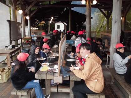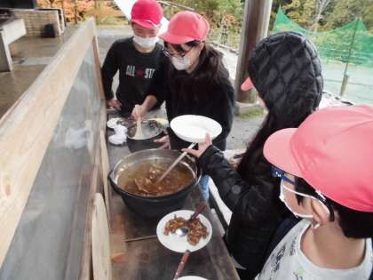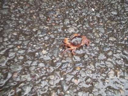 野外炊事場の外までおいしそうなにおいが漂っていたので、カニさんも来ていましたよ。