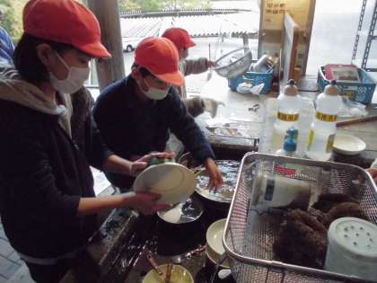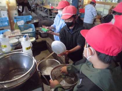 食べた後は次の学校の人が使いやすいように、しっかりときれいに洗ったり、掃除したりしていくことが大切ですね。