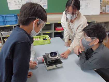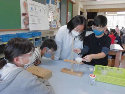 個体物を取り除く「ろ過」や、ものを温める「実験用ガスコンロ」の使い方を学習しました。少し緊張した様子で安全に気を付けながら学習を進めました。