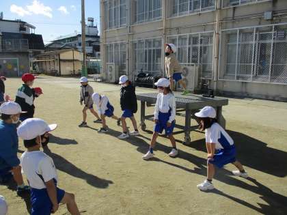 マラソン大会も司会進行、準備体操は2年生の立候補者が中心となって進めました。