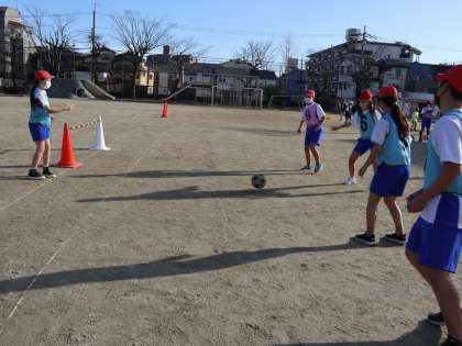 子どもたちは必死にゴールを目指して、ボールを追いかけます。