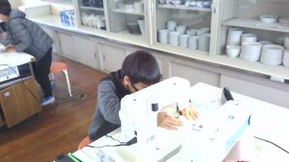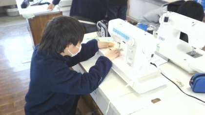 授業の後半では、ミシン用の練習布を使ってコースターをつくりました。