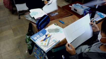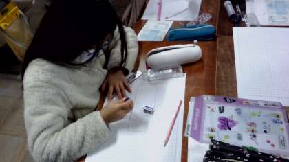 「横の長さは直径×3.14だから・・・」と計算をして作図をしていました。