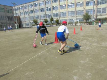 ボールやフラフープを使いながら、仲間と協力して活動しました。