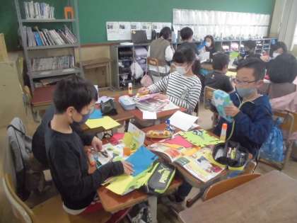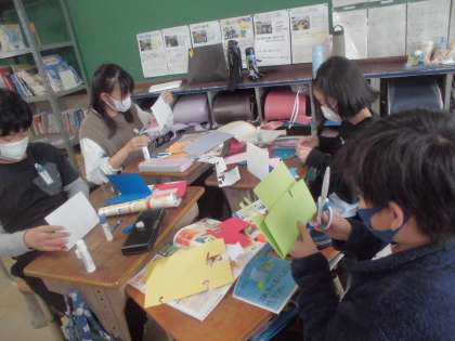 図画工作科「カードで伝える気持ち」の学習の様子です。