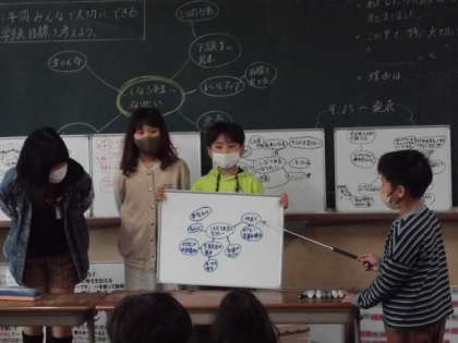 全体交流をしていく中で、クラスで特に大切にしていきたいことがよく分かってきました。話し合ったことをもとに、1年間みんなで大切にできる学年目標を考えていきたいと思います。