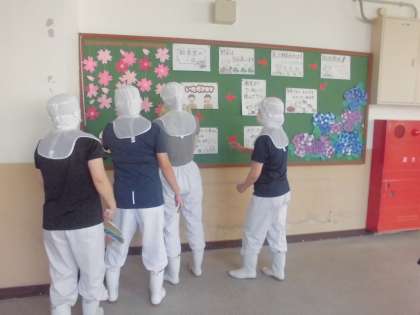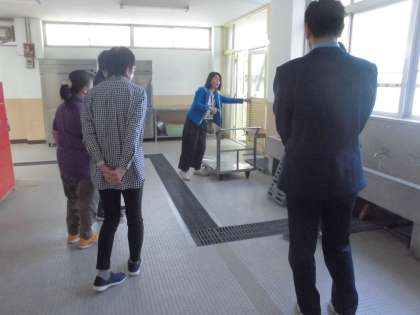 先生たちも給食室ツアーを行い、給食当番の流れの確認をしました。