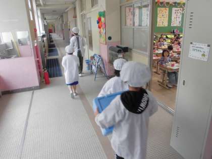 上級生に助けてもらいながら、一生懸命に運んでいます。