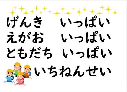 「げんきいっぱい えがおいっぱい ともだちいっぱい」の一年生を目指して取り組んでいきます!