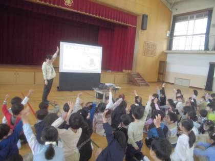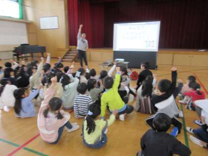 今日は体育館に1組・2組・なかよしの一年生が大集合!