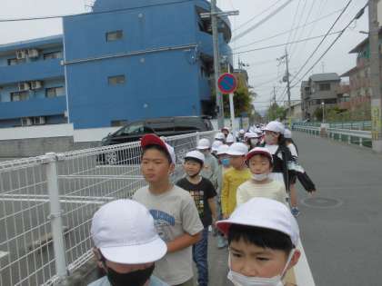 川岡東小学校校区にはどんなものがあるのか、場所によって町の雰囲気はどうかを調べるため、校区探検をしました