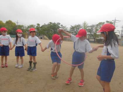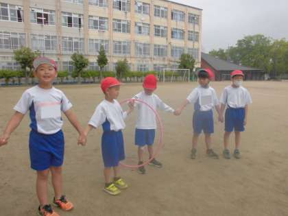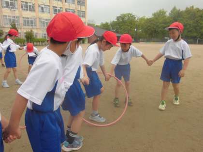 【2年生】力を合わせてフープくぐり!
