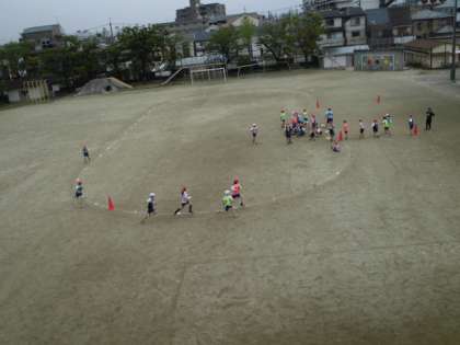 リレーの学習でもバトンパスに重点をおいて練習しています。学習カードに書かれているポイントや担任,友だちの助言をもとにチームで協力して記録を伸ばしていきます。