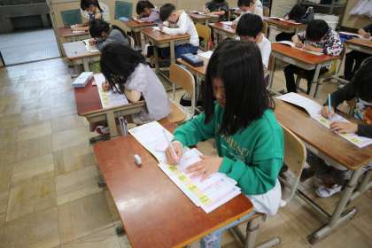 2年生では、160字の新出漢字を学習します。「とめ・はね・はらい」などを意識して丁寧に書くようにしています。