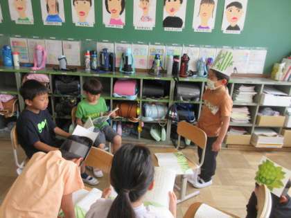 国語科でふきのとう」の学習をしています。読み取ったことをもとに、役割を決めて、音読劇の練習を始めました。2場面は、ふきのとうも、雪も、竹やぶもみんな困っている様子が分かるように、ナレーターの読み方や、セリフの言い方を工夫しました。何度も練習するうちに、どんどん上手になっています。