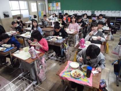 毎日の給食では、しっかり味わい、いつも食缶を空にしています。