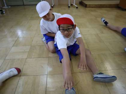 室内なので、激しい運動はできませんでしたが、柔軟体操や簡単な体を動かしたゲームをし、楽しい時間を過ごせました♪