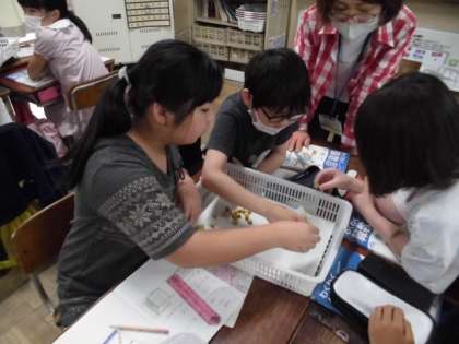 「体積」の学習では,直方体の大きさ比べをしました。辺の長さに着目して,一辺が1cmの立方体の積み木に置き換えて考えると,体積も面積と同じように数値化できることに気づくことができました。