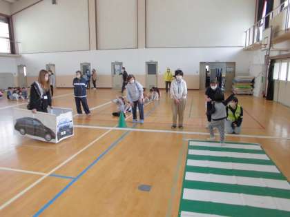 道路の歩き方や横断歩道の渡り方を実践します。