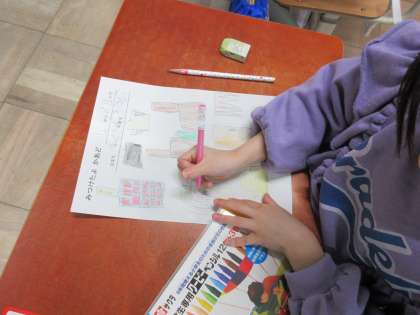 今日は、その時に見学した給食室や校長室の様子を絵にかきました。