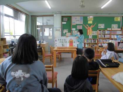 はじめに、「変身トンネル」の読み聞かせを聞き、本の貸し借りの方法について学習しました。