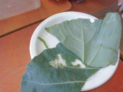 今日は、モンシロチョウの幼虫をじっくり観察しました。