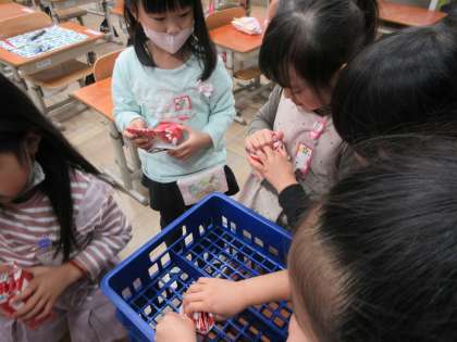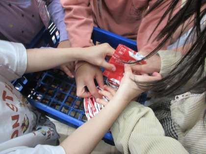 1年生 牛乳パックの片付け