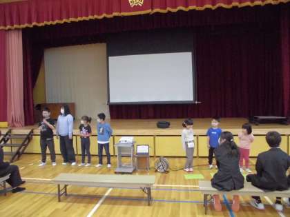 今日は、川岡小・桂東小・桂川中と合同で1年生を迎える会をしました。