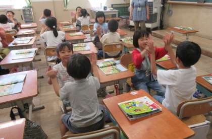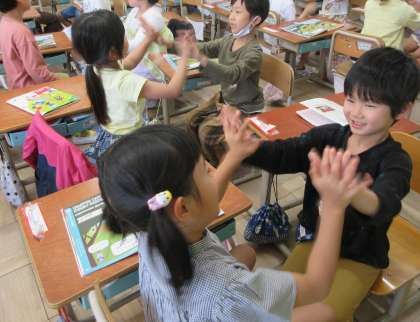 友達と息を合わせて手をうつ活動は、特に生き生きしていました。