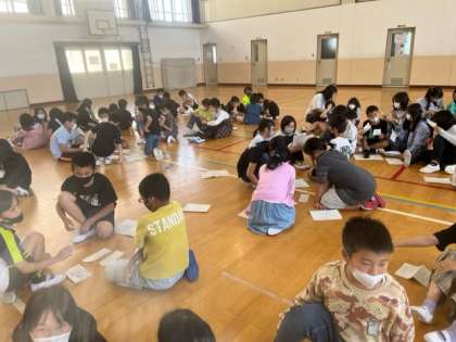 5年生は学校のルールを寸劇にしたり歌を歌ったりします。