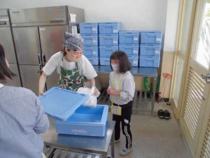 給食委員では、給食を早く食べて給食室に行き、ご飯を返す手助けをしました。