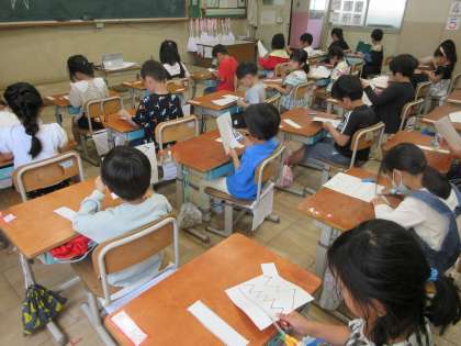 ジョキンジョキンと音を立てて、真っ直ぐの線や丸く曲がった線を切る練習をします。