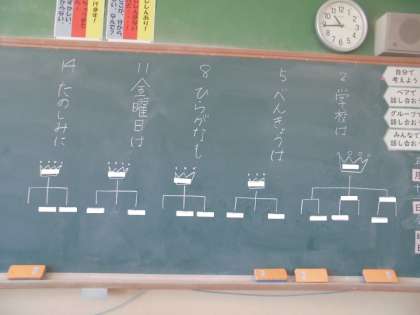 今日は『1年生をむかえる会』のセリフを言う代表を決めました。枠が5つある中で、たくさんの人に立候補してほしいな!と思っていたところ、なんと!18人が「やりたい!」と手を挙げてくれました。そして、落選してしまった人が、悔しさもある中で、「おめでとう!」と選ばれた人に伝えている姿もとても素敵でした。まだまだ活躍できる機会がたくさんあるので、次も挑戦してほしいと思います!