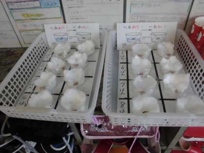 まずは、発芽するには水が必要かどうかを調べます。