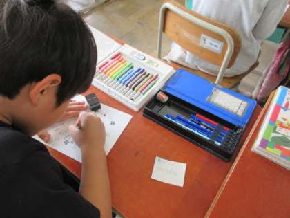 今日は、一緒に回る1年生に、手紙を書きました。もらって嬉しい手紙ってどんな手紙かな、ときれいに色ぬりをしていました。