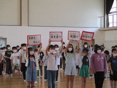 5年生からは、学校のルールを伝える寸劇や、ポケモンの歌のメロディーに自分たちが考えた歌詞を合わせて、登校するのが楽しくなるような歌でお祝いします。