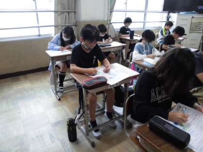「とめ・はね・はらい」など、字形に気を付けることはもちろん、漢字の意味や熟語を覚えることも大切にします。繰り返し練習する中で、定着を図ります。