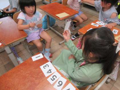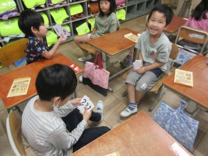 友達とペアになるカードを出し合う活動を繰り返しました。